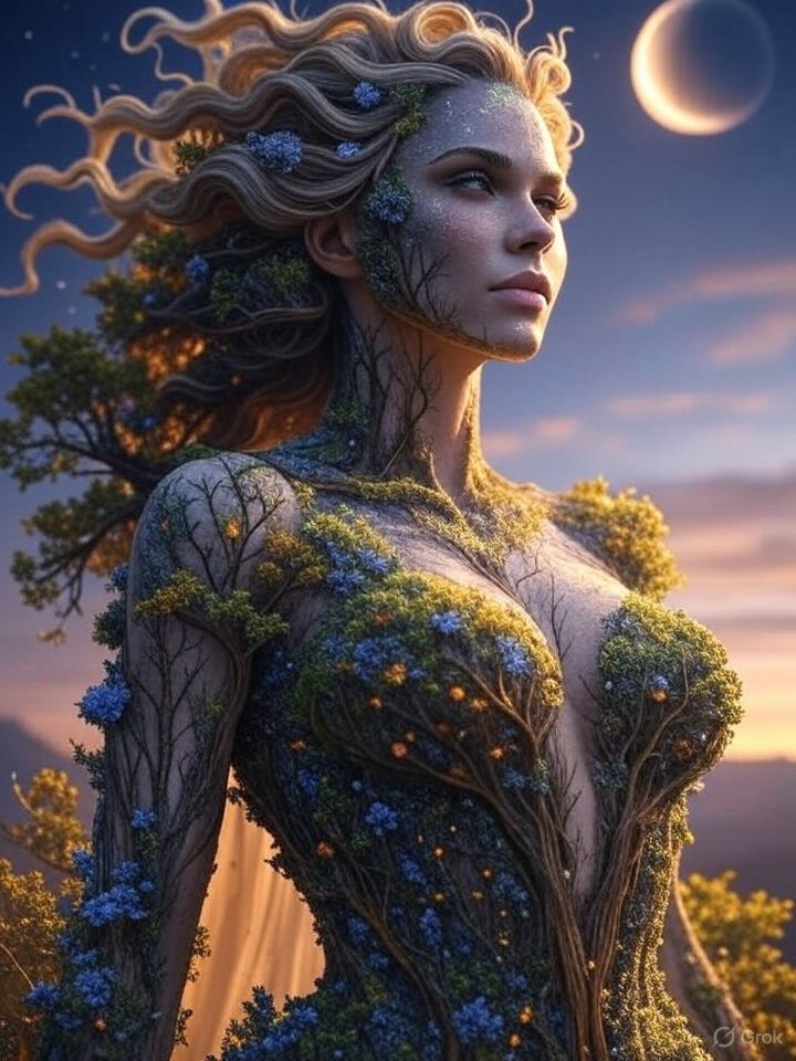 She is the trees and flowers,